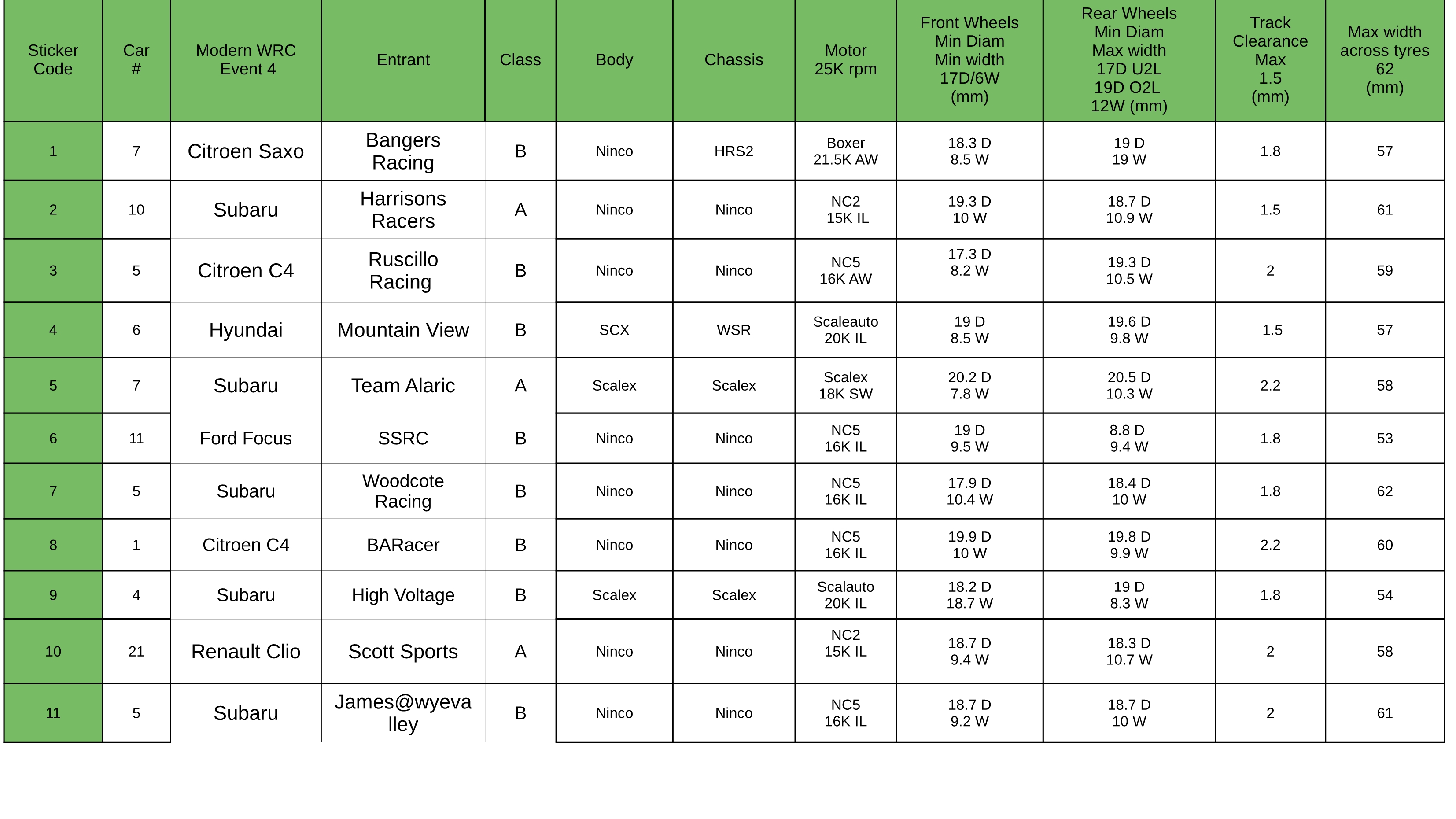 oh, and I know I gave out some email warnings to those who entered this Event 4 about rear wheel diameter non compliance, but have since realised that as far as I am now aware of, all those cars which were raised as "under spec" fall (or technically just about) into the under 2litre diameter Rule. So those warnings have been withdrawn  Sun