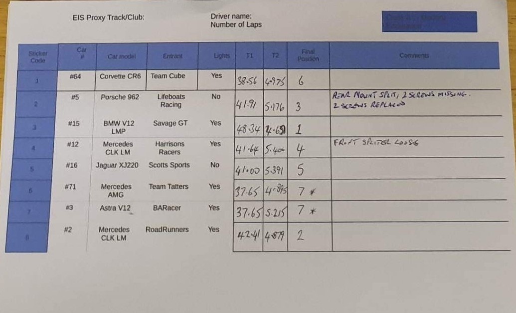 There were some absolute missiles in all of the classes. A normal club car would be doing well to 21/22 laps in 2 mins and some were hitting 25. Very quick! Thanks again and we are looking forward to the next one!  Wrench Yes