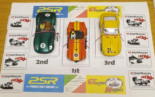 Once again the Ferrari 250GTO of Mountain View was way ahead of the field and took first place, AC Cobra of Bangers Racing put in another great run to secure 2nd place, and surprisingly the  Aston Martin DBR1 of Roadunners at last seems to have found its old form with a 3rd place.....but will it last