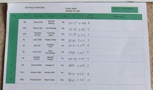 Looks like you took fastest lap in Class D Brumos, nice work  Thumbup