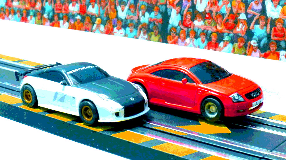 I had time to do some tyre testing on the drag strip, using one Micro Scalextric chassis and Audi TT body...