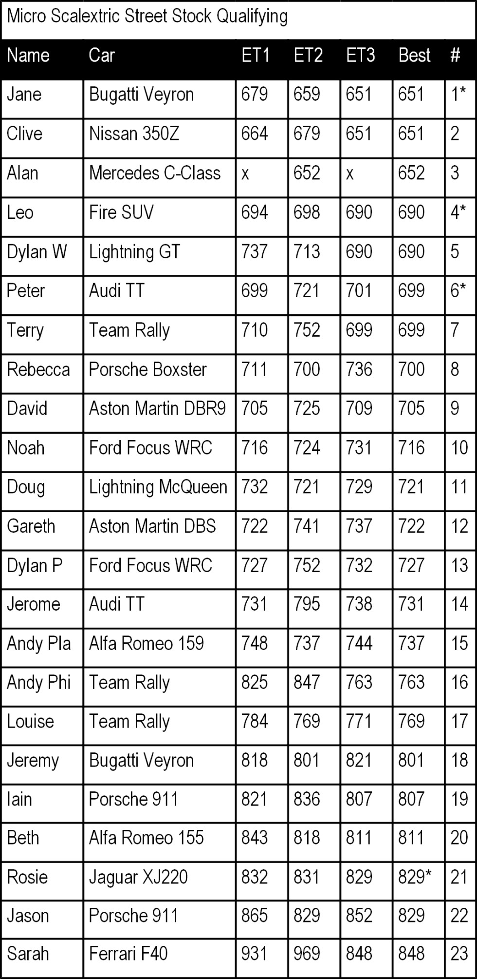 There was time for round two before dusk fell. Iain got away quicker again - but this time his car got really loose off the line and he went sideways. No damage, but Iain sensibly got right out of the gas and limped across the line 9.465 seconds behind Alan.
