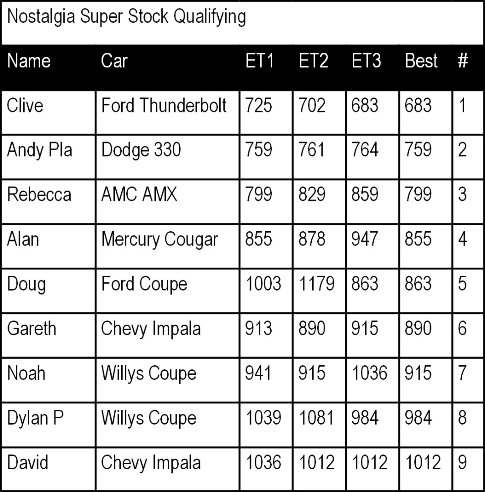 Rebecca's Cha Cha Muldowney "Bounty Huntress" was unbeatable last time out and she chose to take on newcomer David. His "King Fish" Cuda surprised everyone with an extremely rapid run and a win by 0.087 seconds...