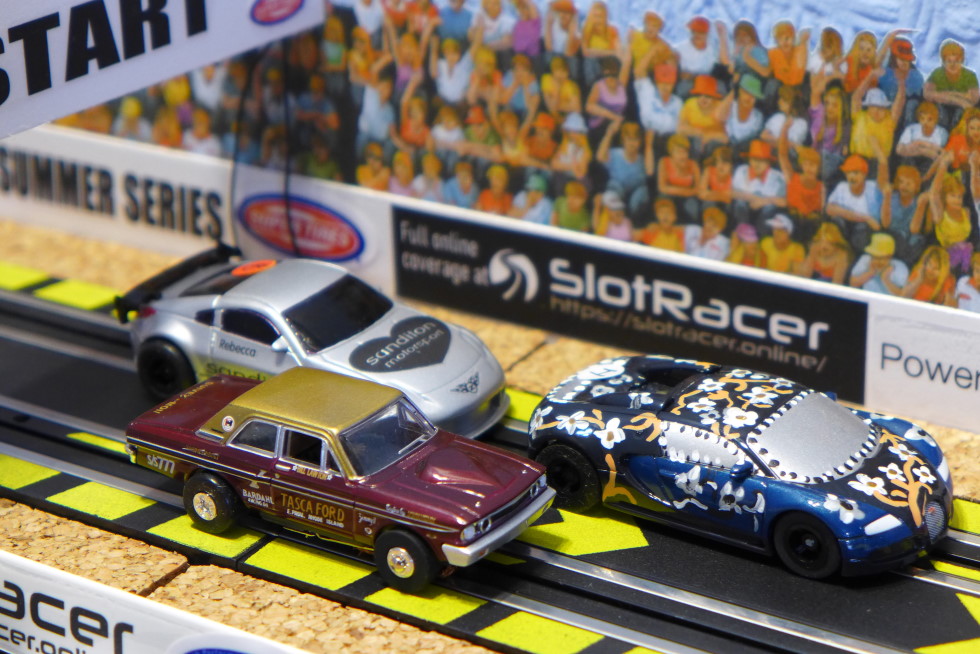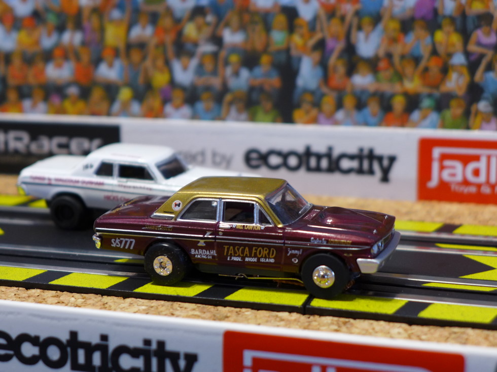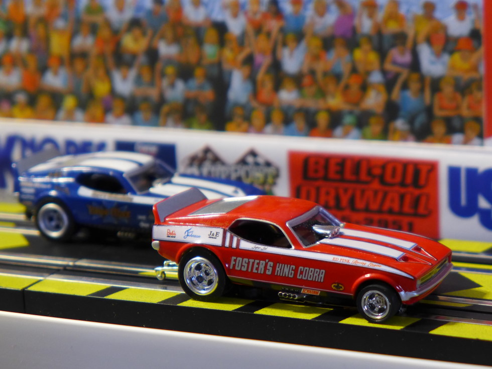 There was time for some 4-Gear Nostalgia racing, with two pairs of Auto World Funny Cars and two fabulous Aurora Speciality chassis.