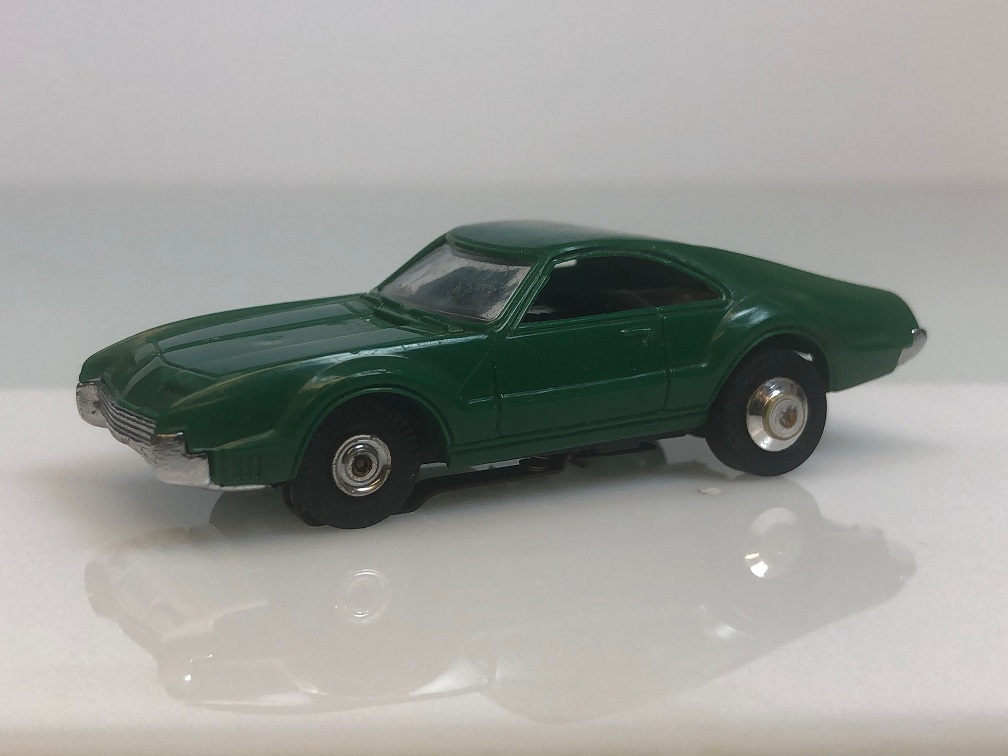 It is the Elva and in need of a clean up but it is in perfect condition, even the screw posts are not cracked. I have plenty of original spares to build a t-jet chassis for it.
