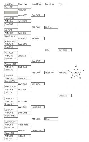 That means Gareth will face Laura for a place in the Final - to face either Terry, Iain, Clive or Jane.