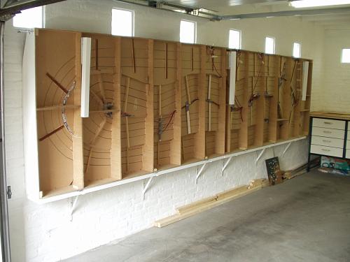 I have used six simple door hinges and two hooks to secure it to the wall.