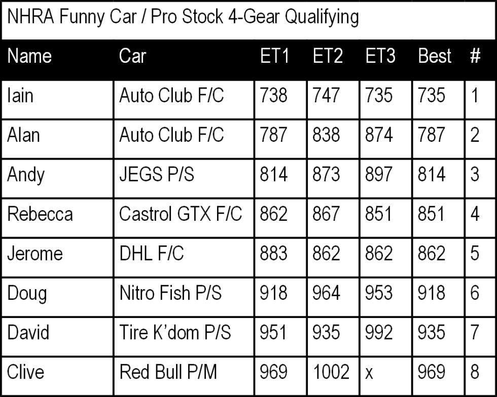 And the final race saw Andy beat Doug by 0.068 seconds - the winning ET 0.860.