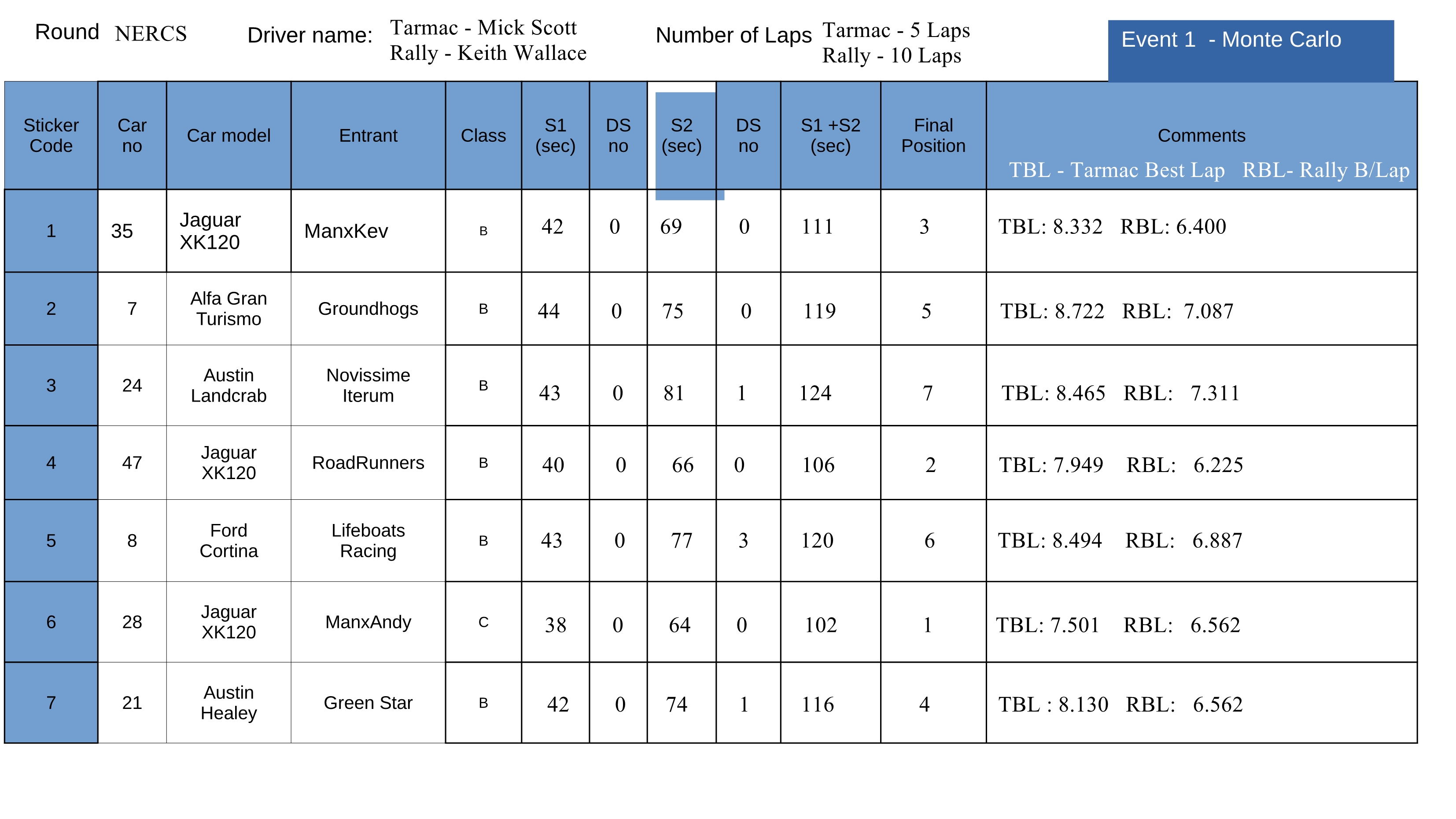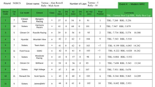 However many thanks to Kevin for another varied mixture of Rally Stages, I though perhaps this Round had been the most diverse of all of them, but the stats seem to point towards this Round being more so in favour of the less powerful Event 4 cars.