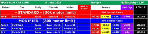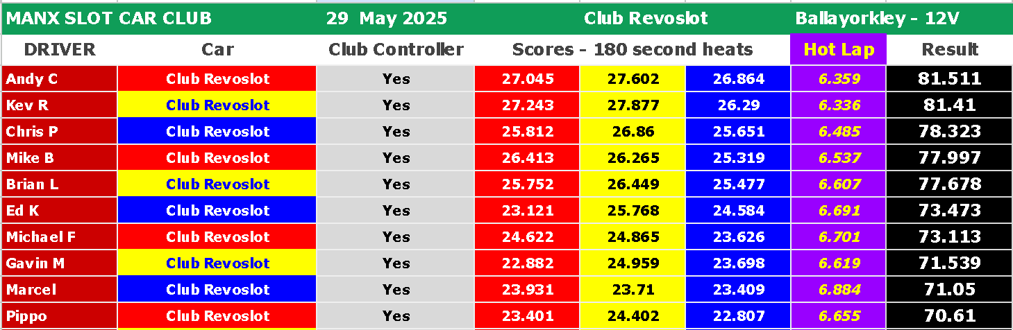 Gav raced his SlotIt Opel and had a really good run in Blue lane.