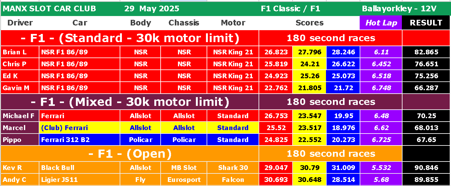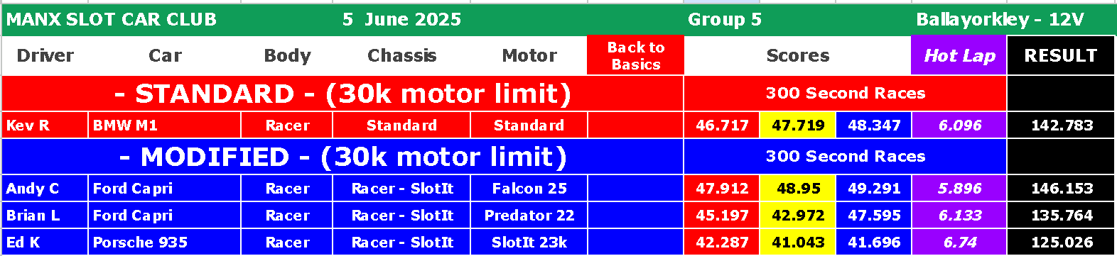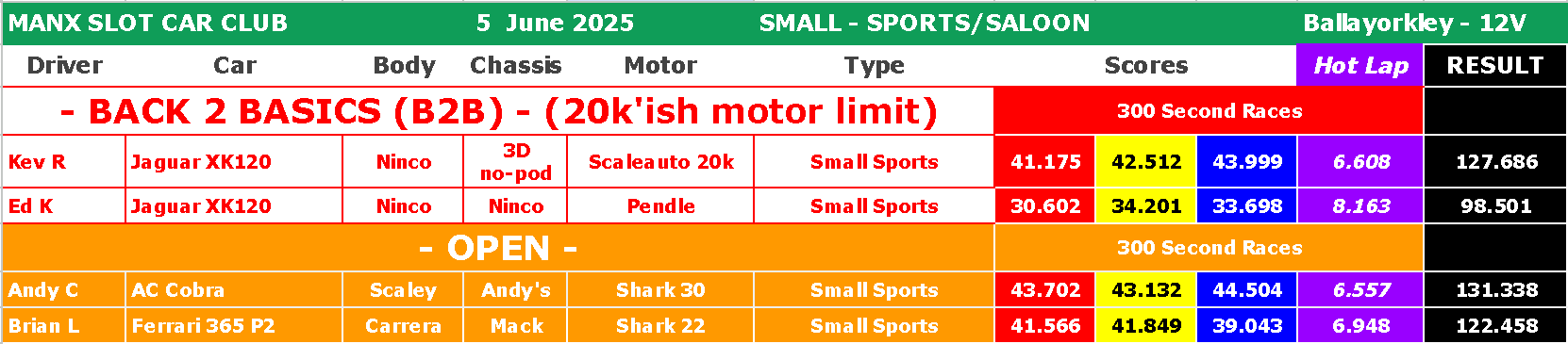 A fun theme class, meant for Back2Basics cars but we allow other cars to race but they don’t collect car bonuses (see the results chart).
