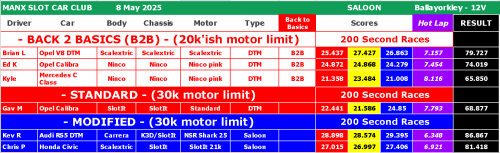 Race report and results - 8th May 2025 - Saloons followed by TV/Film cars