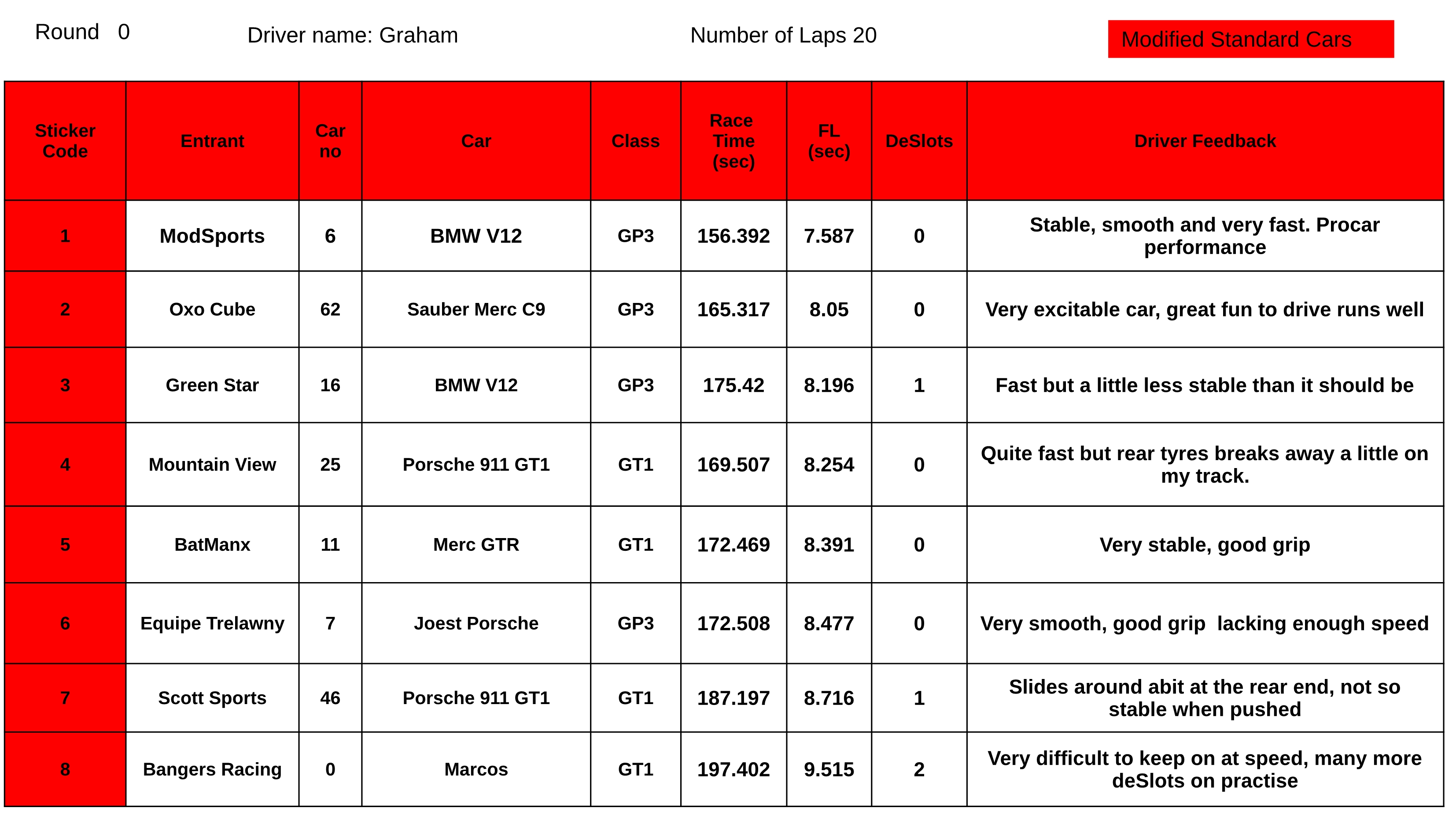 So having a complete field of "legal" cars for the Modified Standard Cars I was able to run this Group yesterday, I have updated the Scrutineer report accordingly so there are no penalties in this group of cars to be applied