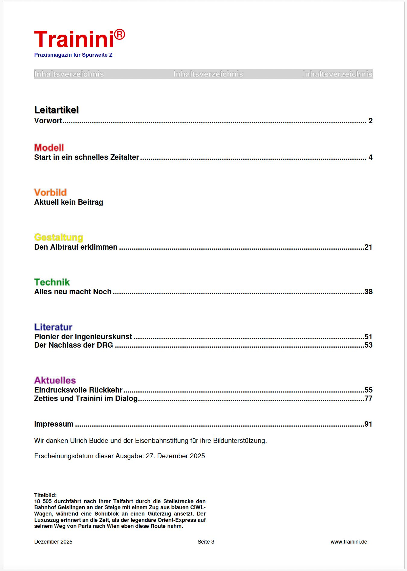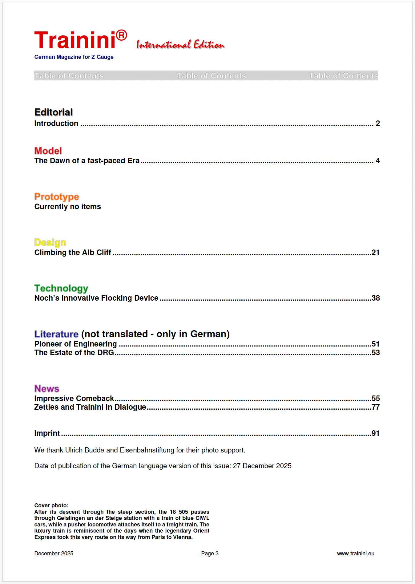 Trainini magazine is published monthly by Publisher & Editor : Holger Späing