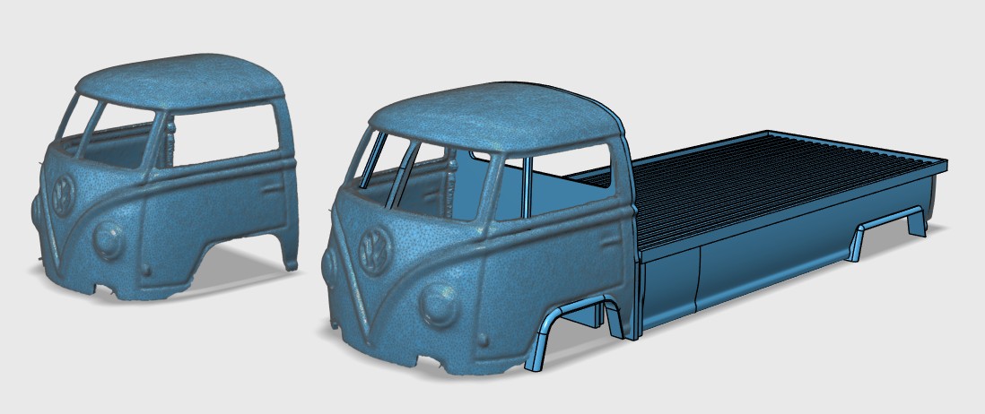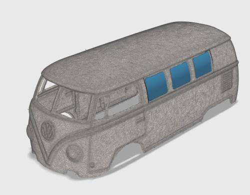 Picked up a 1/32 scale die-cast VW camper van on holiday recently for 7 euros, and 3D scanned it. The resulting file is now the basis for a range of options