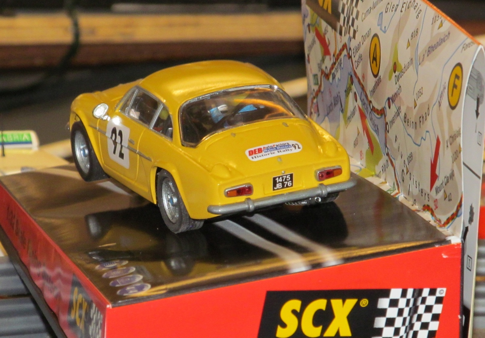 I finished another one today.  As you can see, it's continuing my "less is more" theme.  SCX Alpine A110 with fantasy livery of a 1970s-style club rally car.