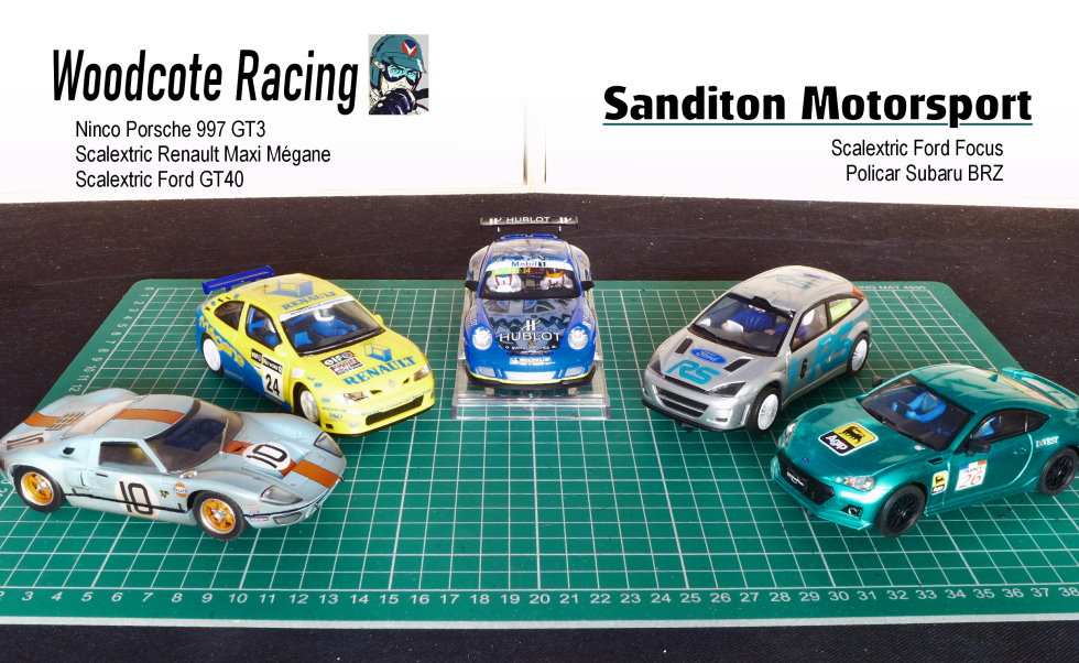 My Brothers Team: Lumberjack Motorsport’s class A Escort Cosworth and Class B stock Ninco Mustang. My Wife’s team: Scott Sports (factory backed!) Class A Skoda Fabia Wrc (fresh from the rallysprint) and Class B 1275gt mini with JS chassis. My team: Scrapyard Racing’s Class A Porsche 911gt3r, and Class B stock Ninco Toyota Corolla (this is plan C afternoon my other 2 class B build some ran into difficulty!)