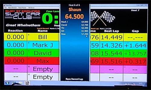 This time Mark won the class from Shaun, followed by Bill, Vic, David and Max. However, Mark was unable to beat Shaun's 64.6 lap total from the Oct 2nd meeting, topping out with a 63.3.