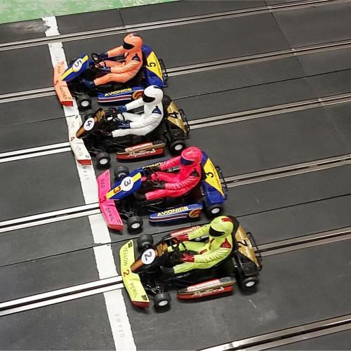 First up were the Club's Scalextric Karts, where Shaun was thrilled to take the win from Mark by half a lap.