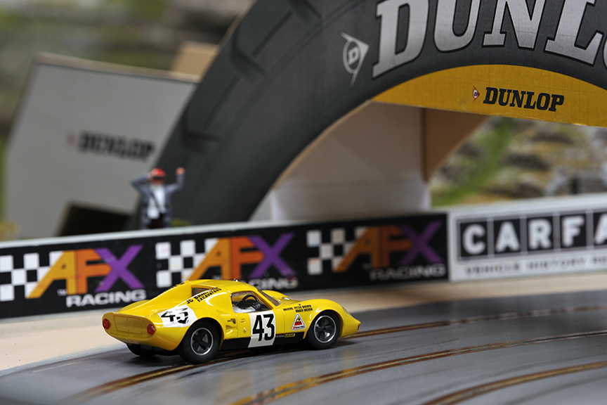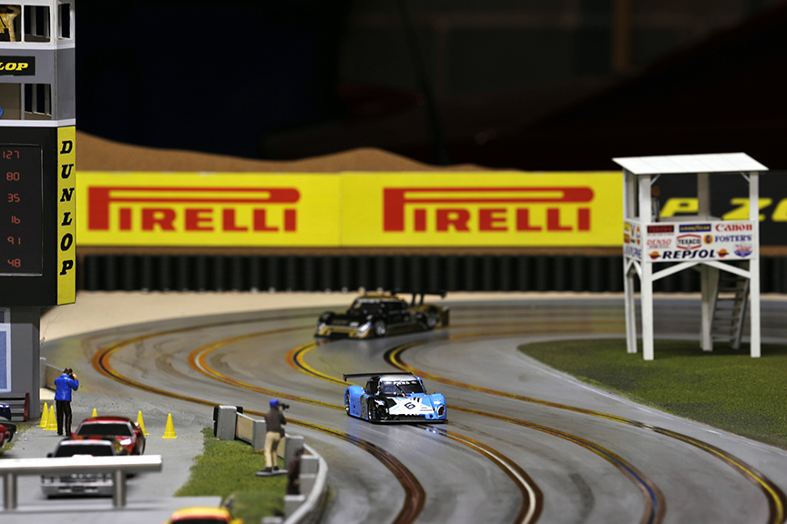 I downloaded .eps image files from brandsoftheworld.com for the signage and used Adobe Illustrator to re-size and in some cases, alter the files. The graphics on the Dunlop bridge were made from scratch based on aerial photos of the 1:1 bridge at Le Mans. I took some liberties in it's design, so it is not a 100% accurate replica.