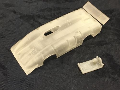Underneath all that 'orrible whale tail and printing, the basic shape seems quite good to me. Working - sort of - bits have been filed in the appropriate waste basket so I reckon a chassis might be in order.