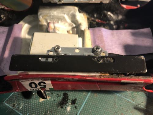 You will see a white line between the metal Attachment and the body. This is a strong double sided tape that holds it to the side of the body. If size allows as has been said you can use foam rubber which will give isolation to the chassis.