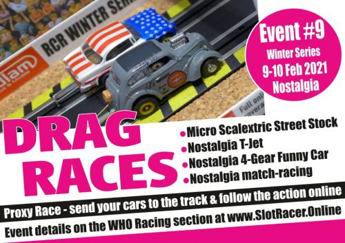 The fourth of our five-date Winter Series is coming up fast! This one is Nostalgia-themed - featuring Micro Scalextric Street Stock, Nostalgia T-Jet, Nostalgia 4-Gear Funny Car - and some Nostalgia Micro Scalextric 2019 match-racing. Qualifying is on Tuesday 9 February, racing on Wednesday 10 February and all the coverage is right here on SlotRacer Online.