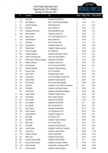 With the SCX Classic track coming up next, there's still a question mark over whose guide blades might be a little too deep - plus there's the varied mix of surfaces over the final four stages. It's a long event - a few cars have been dropping down the order and others are finding their form. Another factor is that all my cars (including the shared Class B RS200) will be getting the median stage times for their class. We should know the result in 14 days time.