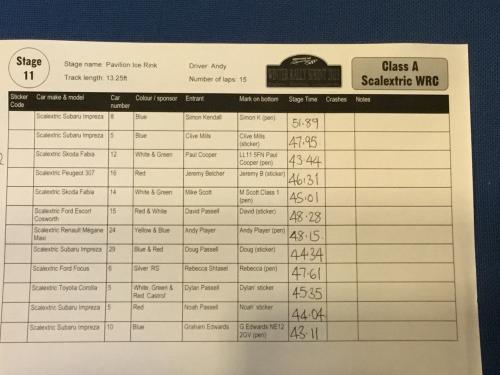Then I'll draw the lucky dip to find the winner of the Sideways Skyline, followed by Class B and - finally - Class C to determine who will be the winner of the inaugural WHO Winter Rally-Sprint. Phil B leads Graham by 2.74 seconds.
