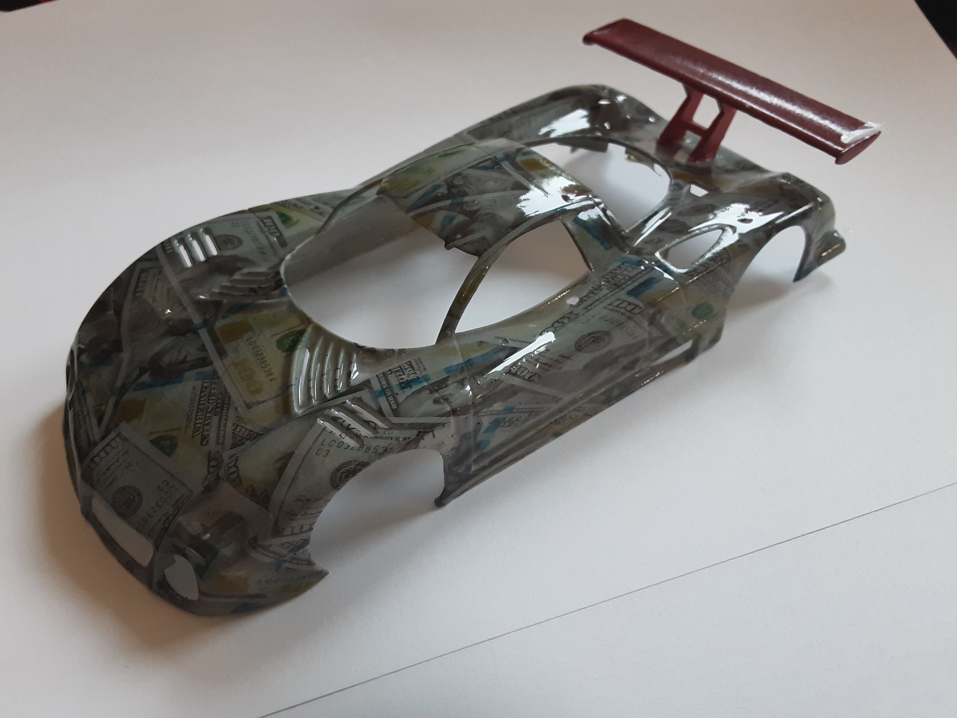 We were then treated to a live demonstration of Hydro-dipping by Nonfractal. He hadn't prepared one earlier, he did it right in front of us in his back garden. And it only involved one very dangerous chemical spray. And there it was, a fully decorated body in the time it takes to make a massive cup of tea!