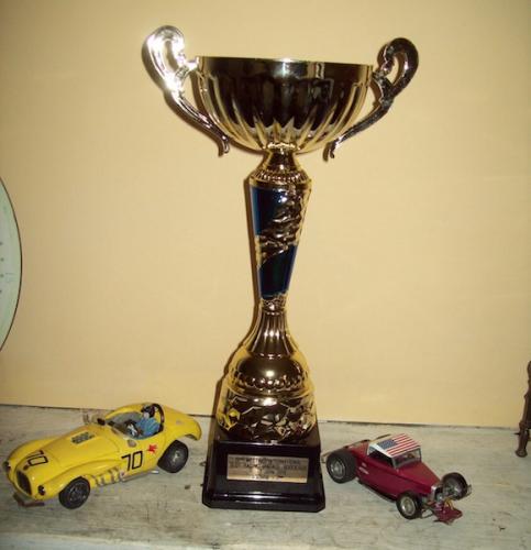 As soon as I saw the opposition, it was obvious that I might just as well enjoy myself. In the first place, the regular quick guys were all driving yank tanks that made my cars look like a scale smaller than they were. As I go for the racing, it was always going to be tough as this meet was 2/3rds concours points and only a third racing points. The standard was extremely high. So I raced the two cars I enjoyed driving most rather than the ones I expected to get into the concours. 32nd scale Ford coupe and Old Yeller.