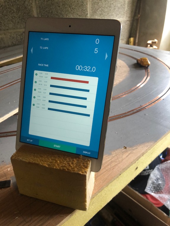 Since getting an iPad mini, I downloaded LapTracker from the Apps store and have just rigged up a temporary - probably permanent - block to hold the Pad. The Mini is just the right size I think. A full size one would be over large.