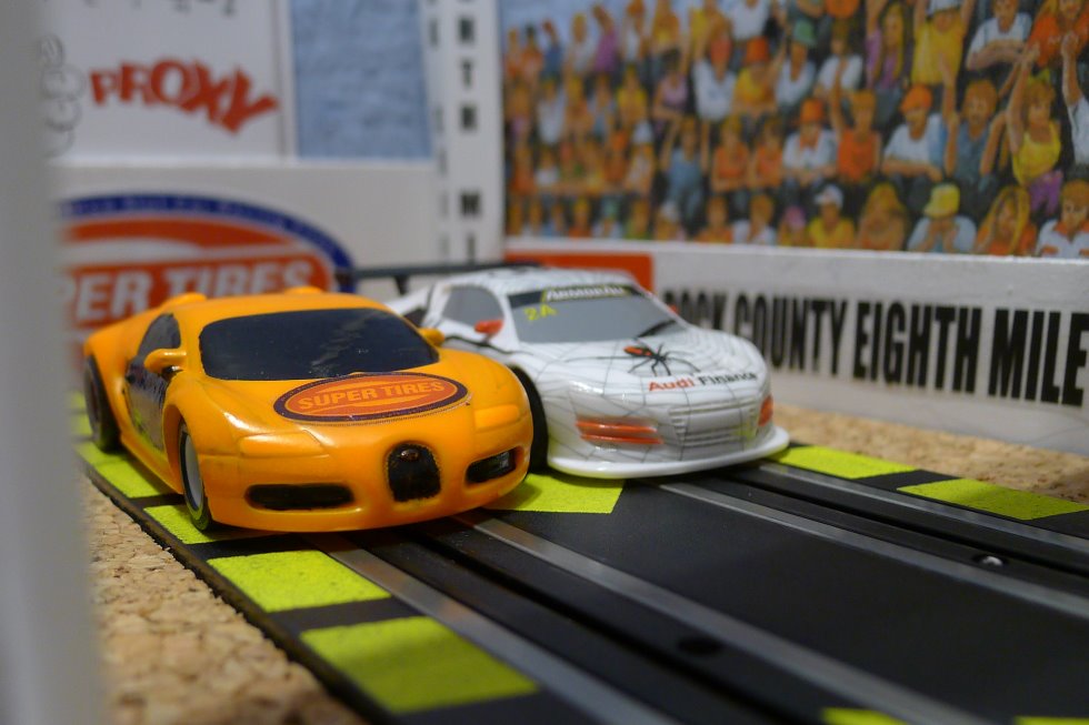 Would a Veyron be beaten by an Audi in race 3? It wasn't really close - Jeremy clocked 0.626 to take a 0.070 second win. Anna's ET was 0.695.