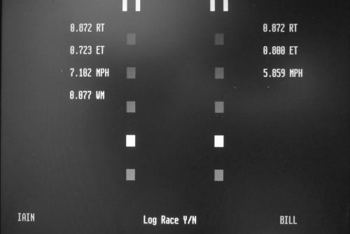 Crazy Ivan was a big sluggish, but still beat Andy's Nissan by 0.036 seconds - the ETs were 0.501 to 0.535.