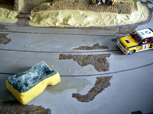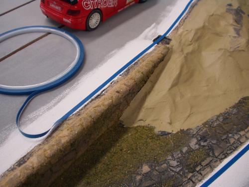 Ruin Bend taking shape. A castle was too high for the folding race track, so it became a ruin.