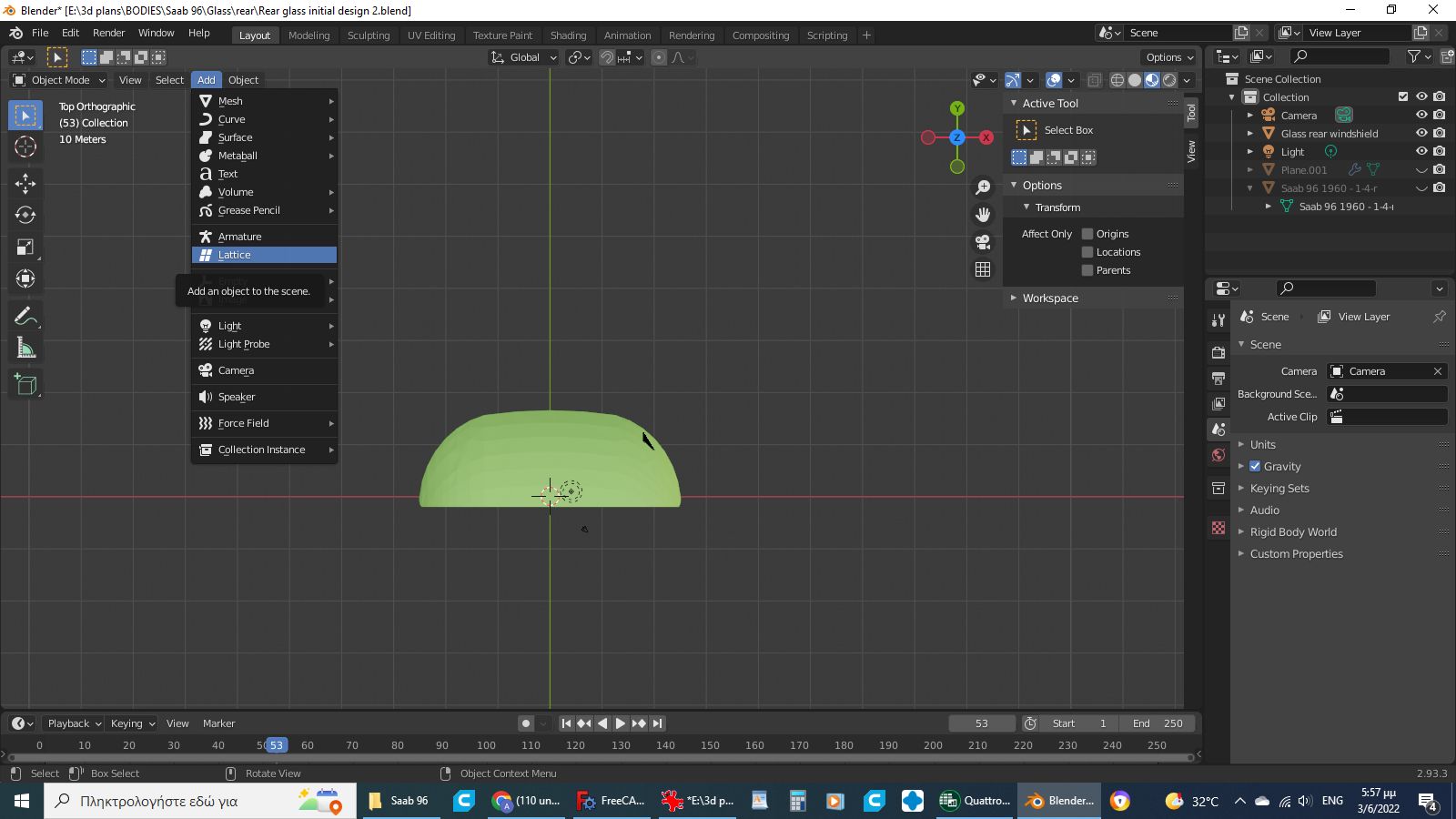 -1:cut the windshield frame off the body using the bisect tool(works faster than boolean) and align it to the world origin