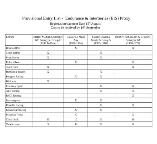 Looking like Roadrunners will be in Class A&B (in order to balance the class entry numbers), but I will wait to see what any other remaining prospective entrants wish to offer first