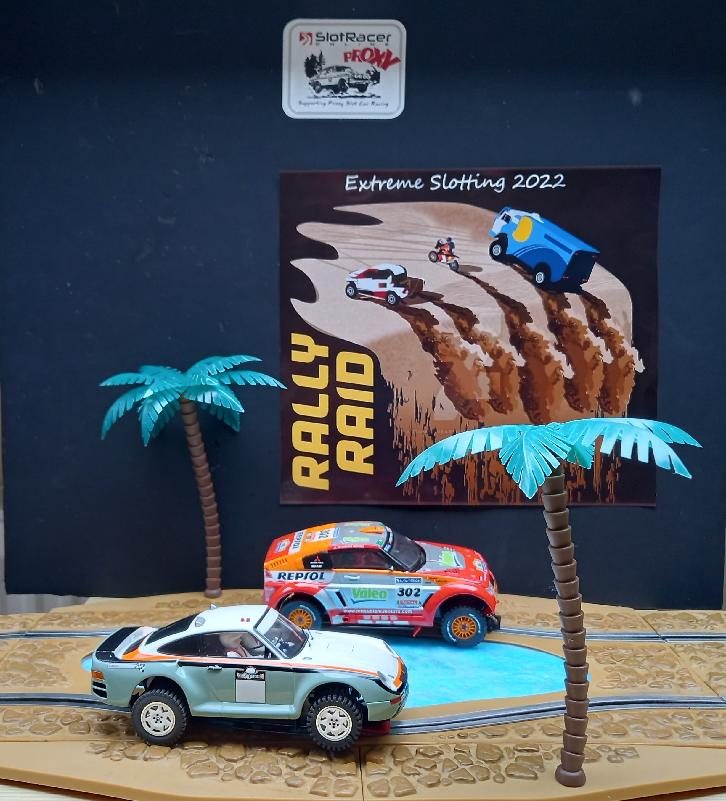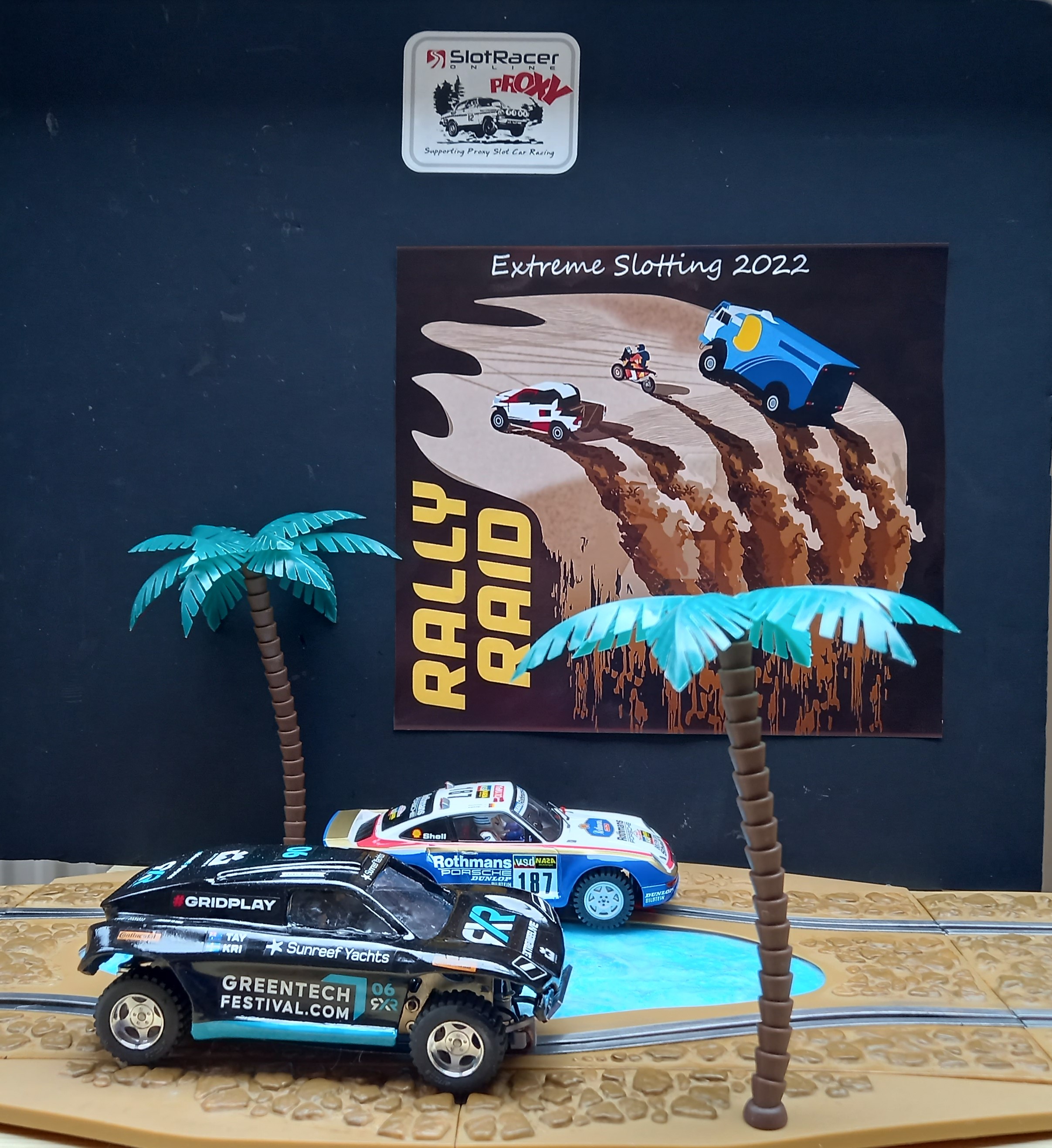 Both new cars, the mighty Mittos chassis from last year is now sporting the Extreme E Odyssey Car of Nico Rosberg X Racing, the rather lovely Scaleauto Porsche 959 has been dusted off from the shelve, and will no do battle with James similar car.