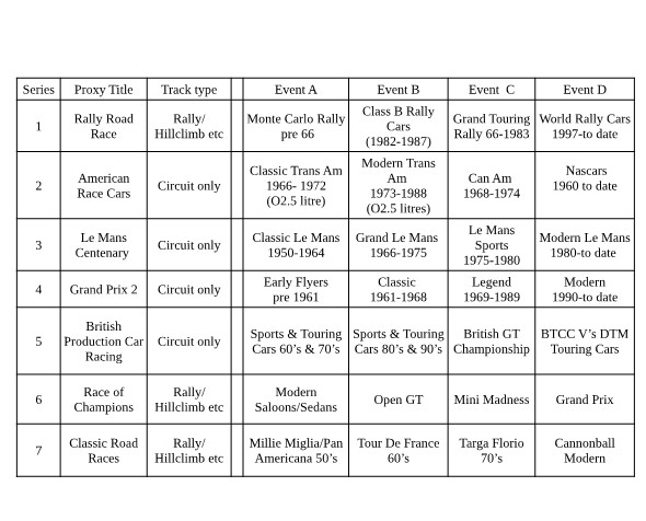 In doing this I came to the conclusion that in principal we attract a regular number of loyal entrants and hosts and in effect could declare ourselves as a Proxy Club to which I have now titled this thread, which we can use next year to manage our activities on Slotracer online and on our Facebook page.