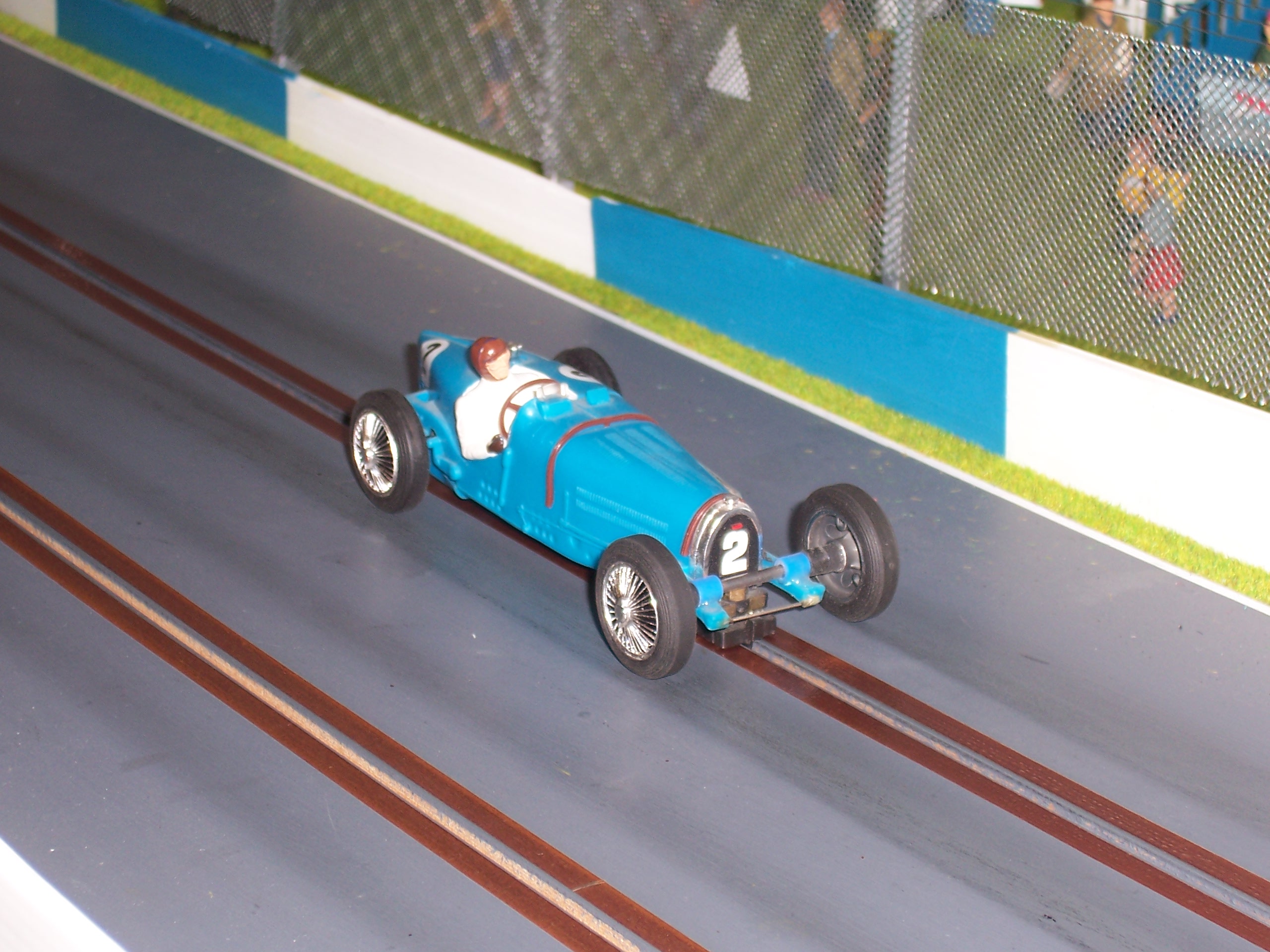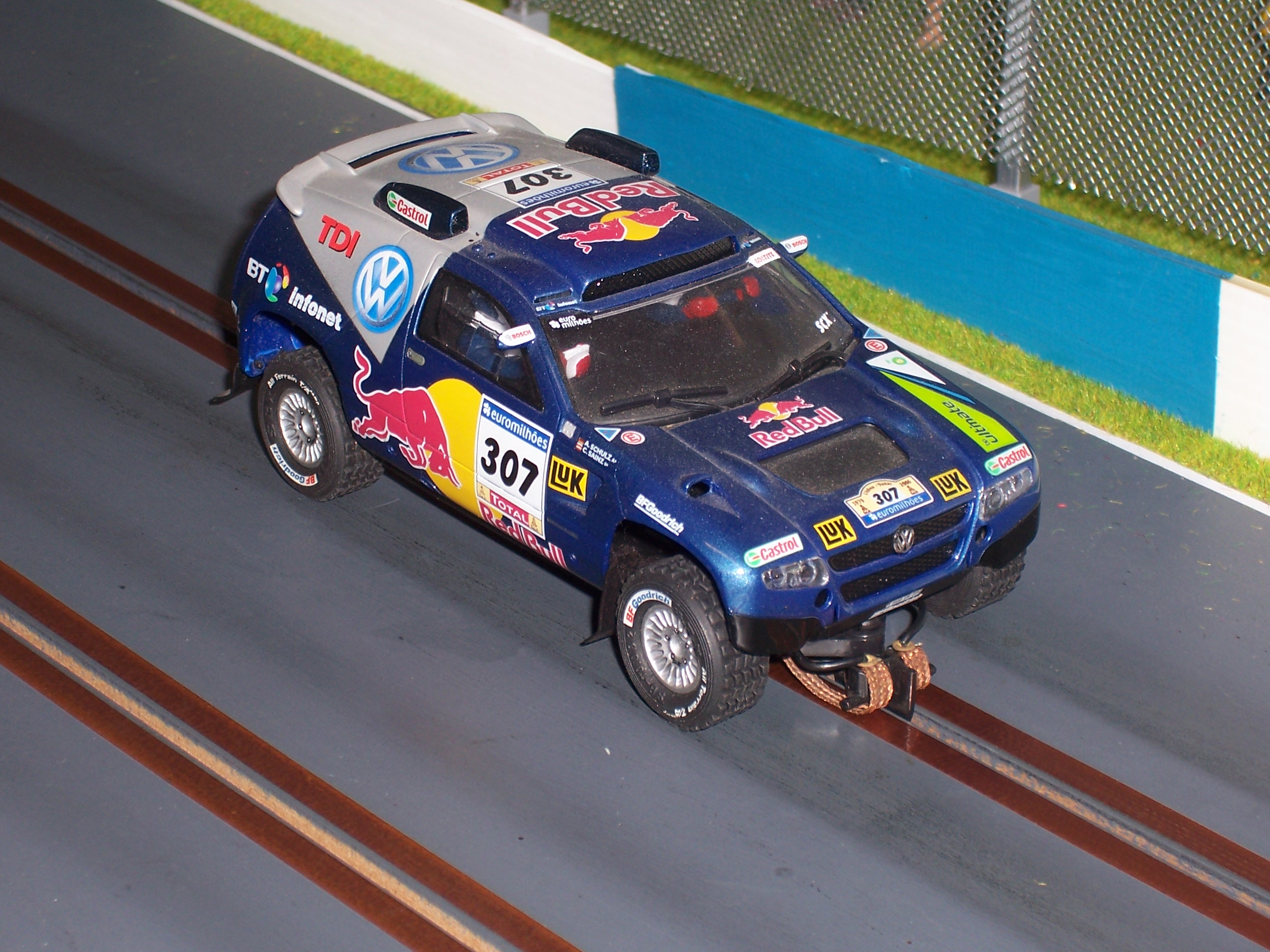 ... and I just LOVE this blue car. A Ninco sidewinder Megane. The aggresive shape, colour-scheme and alloy wheels called to me and I just 'had' to have it. Second hand, it's proved to be a great racer too.