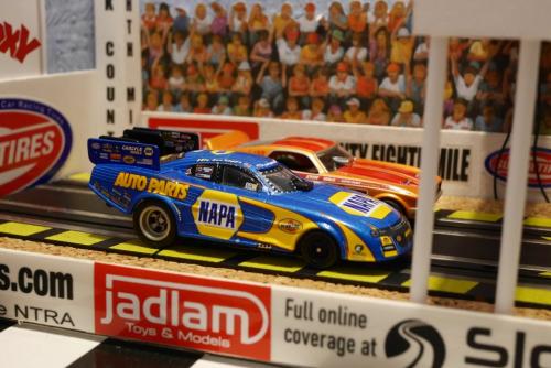 It was pretty close, with the NAPA Funny Car having a small advantage at half distance...