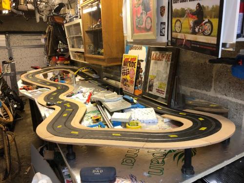 I have spent the last few evenings tweaking heights of elevation to see if cars and my bikes can handle the track, this bit has been enjoyable.