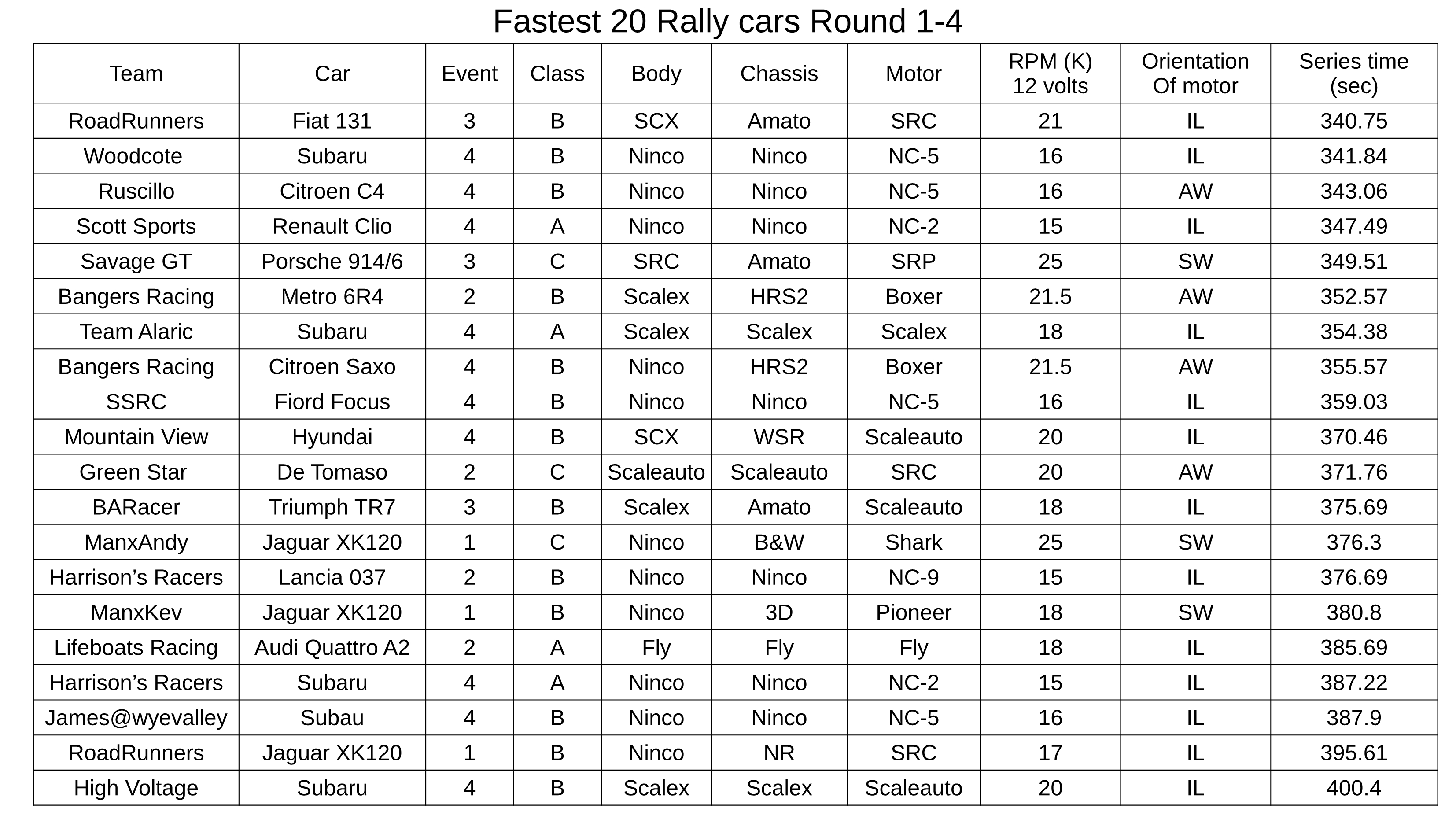 It all works very efficiently on my database so no headaches, apart from when I need to make default time adjustments. So kind of wish all the cars had all been more universally track friendly to start with, but I think enough been said on that subject. Obviously championship style points system would have been easier to administer, but this one had to be Rally style, and fit in a points system that can be collated with the remaining Triple Crown” series as well.