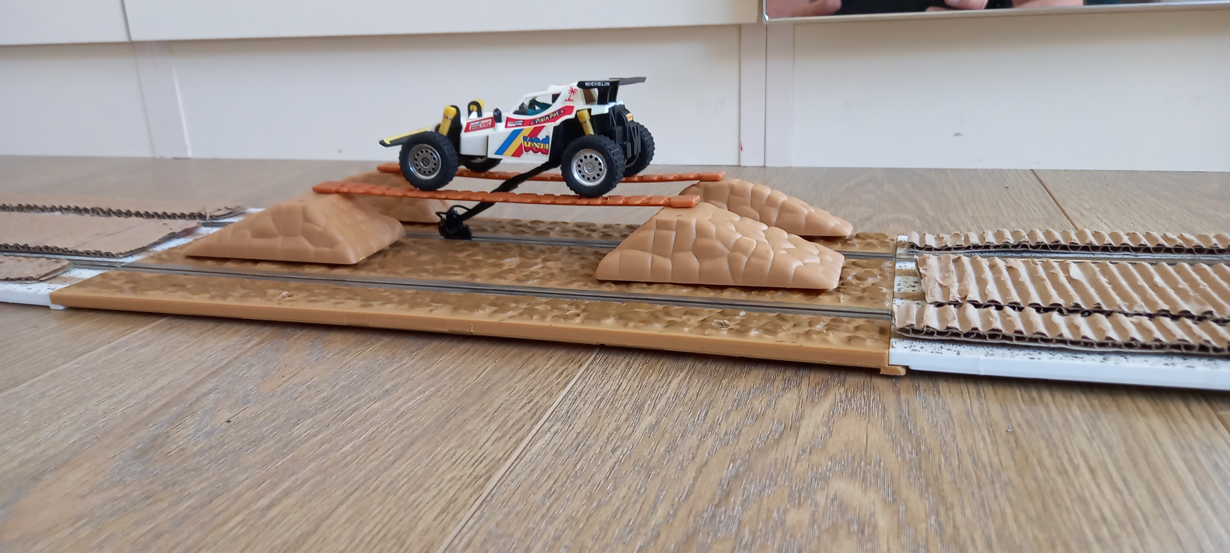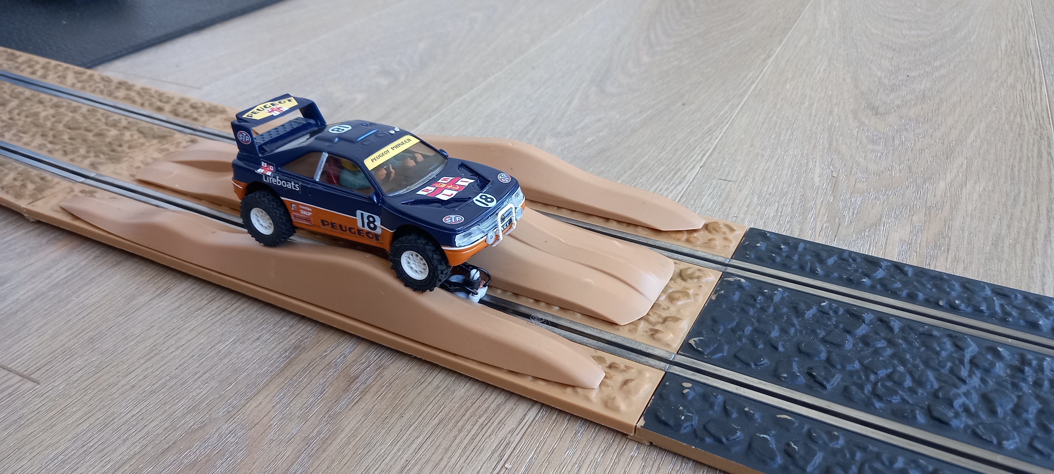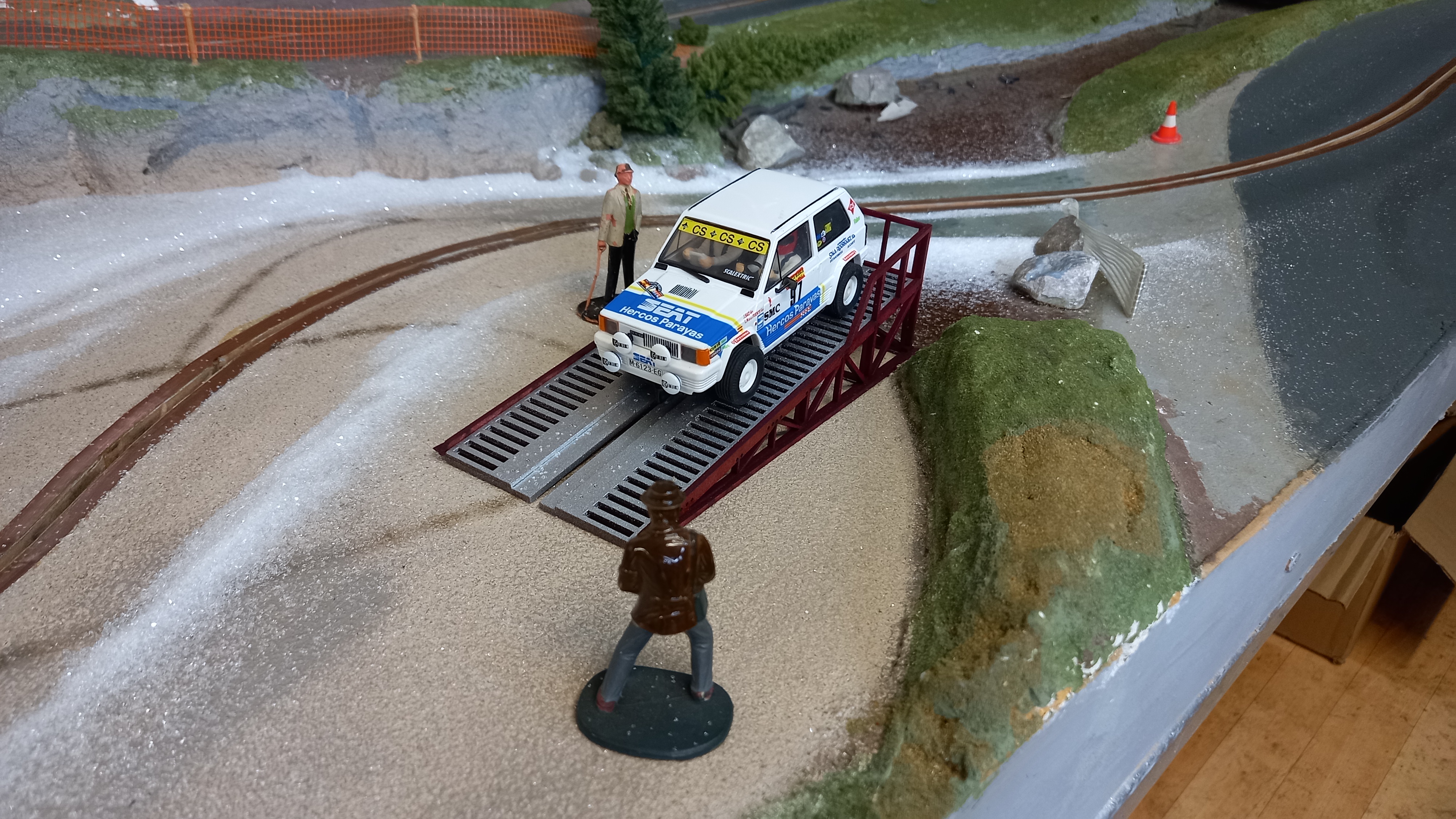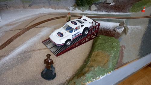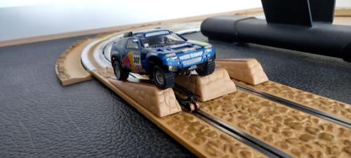 The cars were run on much the same level as for the SCX cars apart from the elevated SCX bridge was removed, I did try the cars across the bridge but mostly they failed to get across consistently.