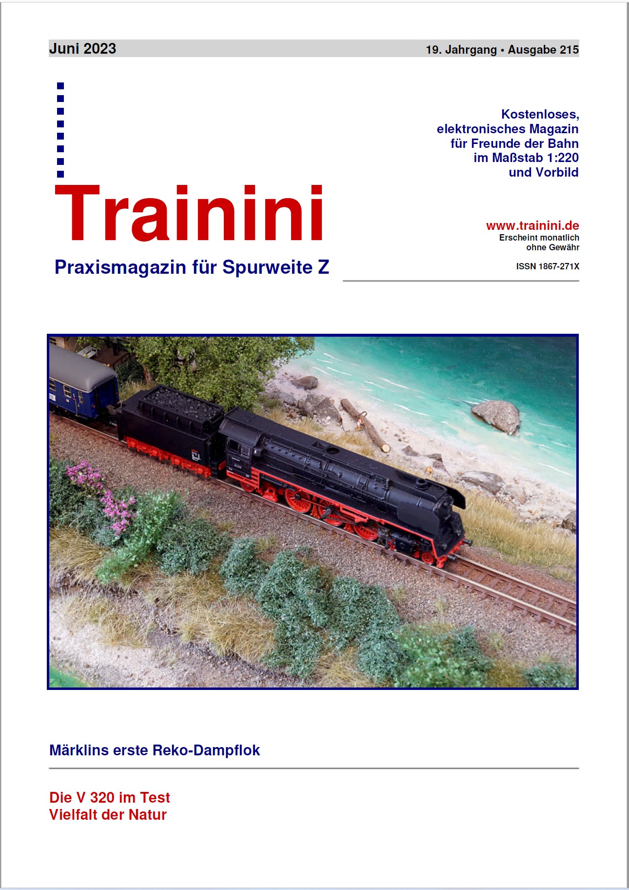 The new free 62 page, issue number 215, June 2023 Trainini magazine for 1:220 scale (Z scale) model trains is available now.