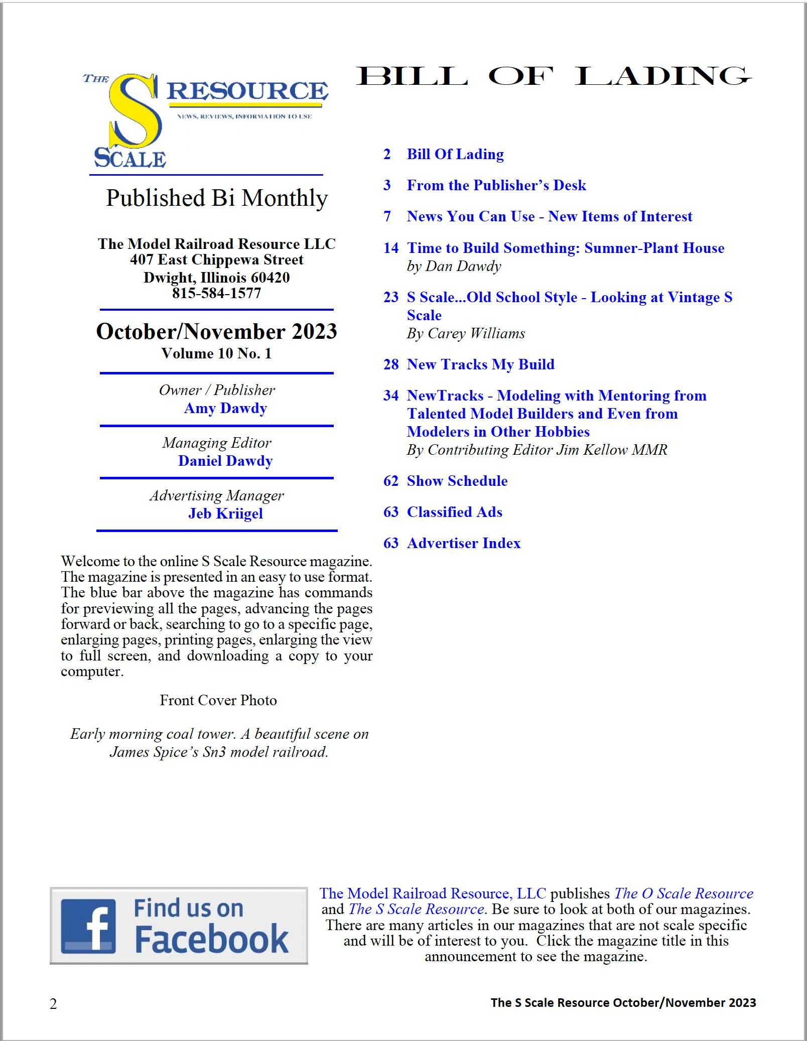 (published by The Model Railroad Resource LLC, Amy Dawdy, bi-monthly, 106 pages).