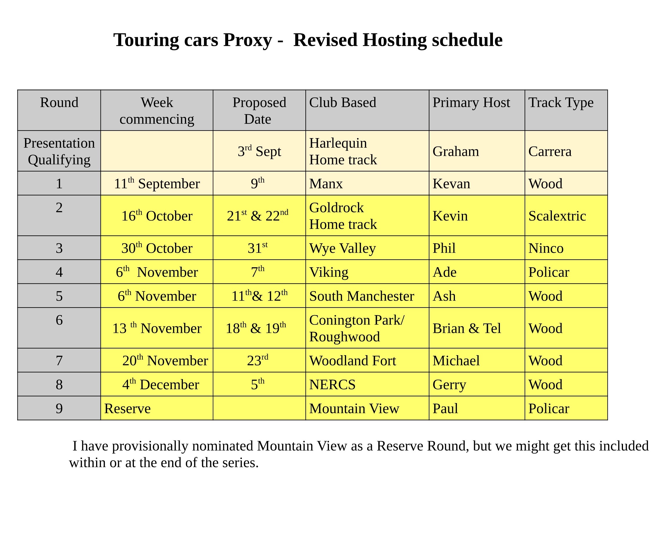 Feeling positive this morning, so assuming that the cars arrive in time for the proposed next Round on the weekend 21st & 22nd October.