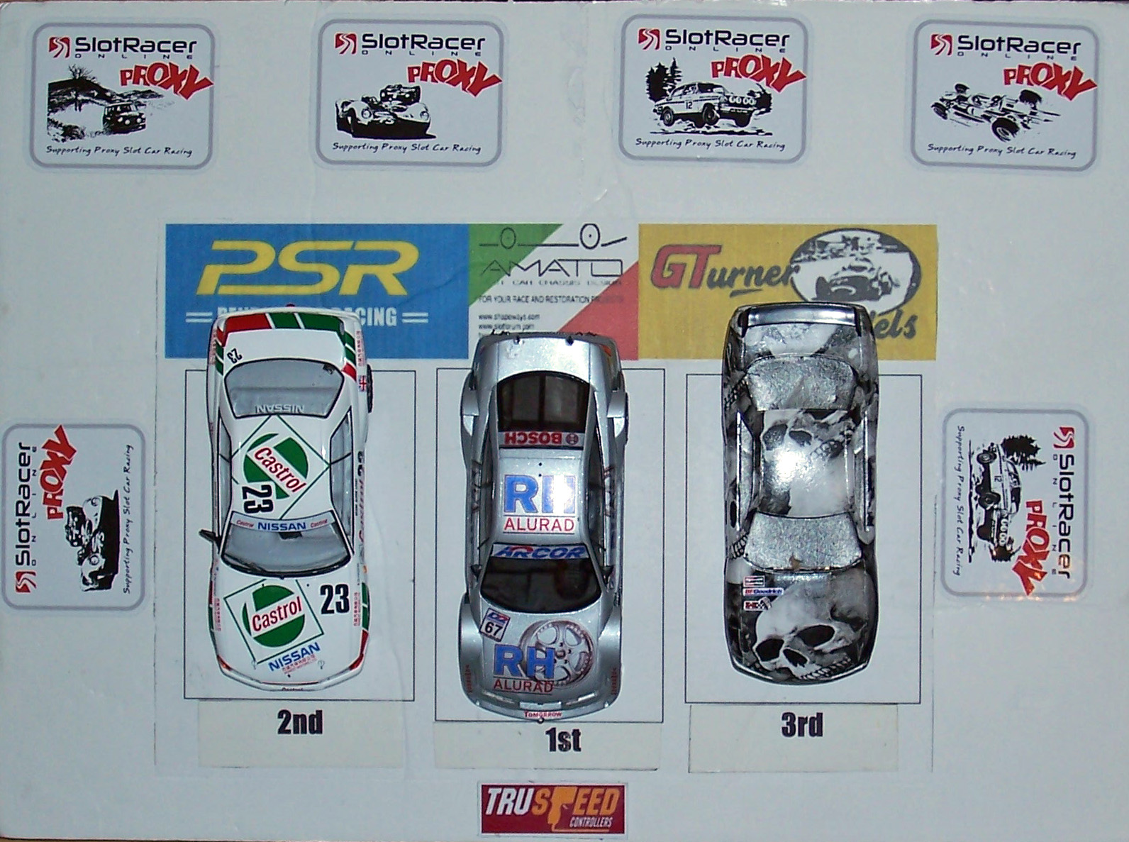 HERE. It is 50ft in length, fairly long straights with enough twiddly bits to make consistent fast laps a suitable challenge. I normally run at 13.8 volts but turn it down to 12 volts for proxy purposes as Graham requests. As a rough guide to lap times - box standard Scalextric saloons would struggle to get below 6.3 seconds at that voltage while an unmodified Slot.It Skyline would lap consistently around the 5.5 second mark.