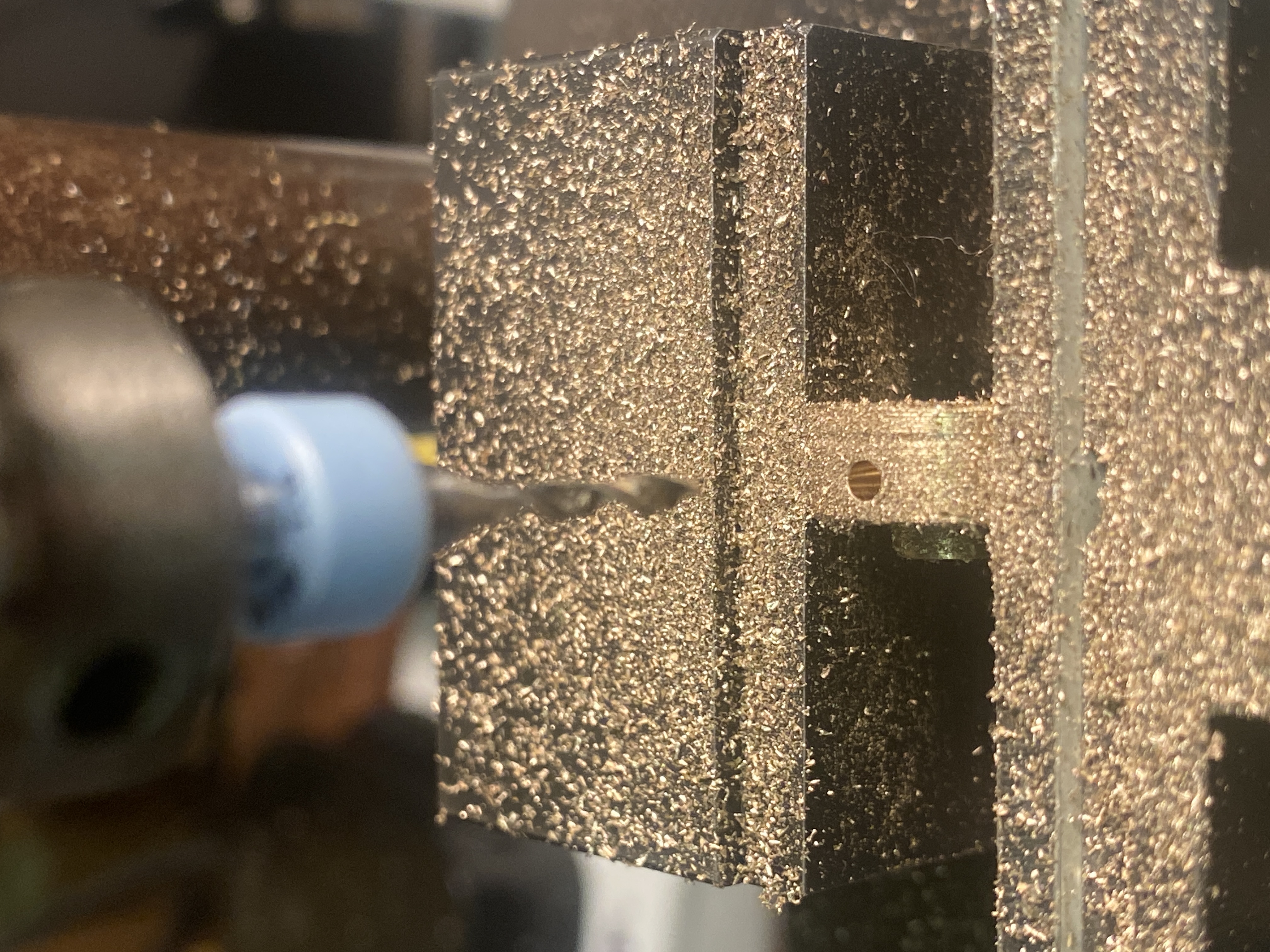 For the drums, I turned some brass and drilled the 3/32 axle hole, machined the little groove and then decided I wanted to try and machine some fins.
