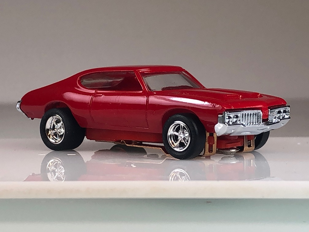 It's a Dash Olds 442 body with a Wizzard High Performance T-jet chassis. My humble apologies for the dog/cat hair. We have one of each. Super Macro is a bugger.